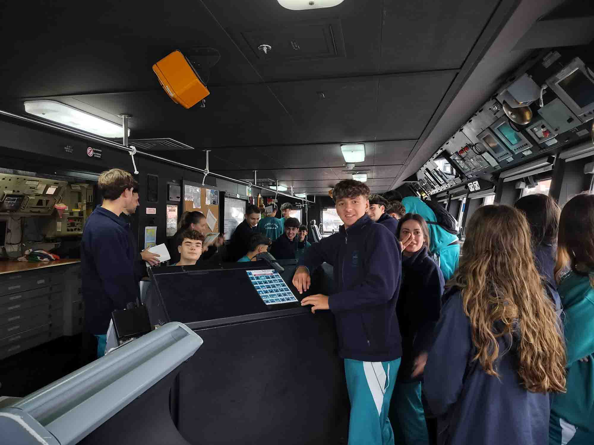 Disfrutaron de un paseo en uno de los barcos de la Armada para conocer la ría de Ferrol atracando en ESENGRA, una de las unidades de especialidades de la Armada. Y fueron invitados a comer en el comedor de los alumnos de la Escuela.