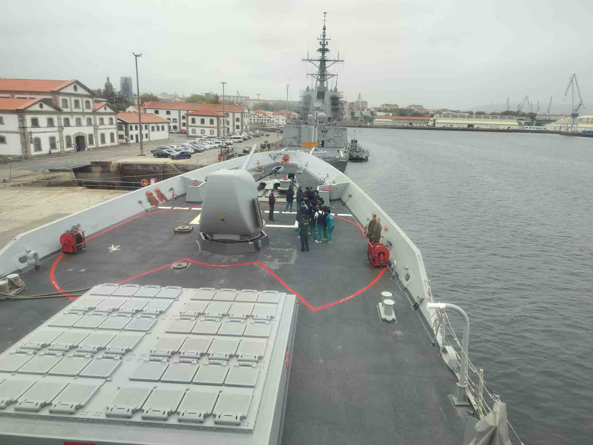 Disfrutaron de un paseo en uno de los barcos de la Armada para conocer la ría de Ferrol atracando en ESENGRA, una de las unidades de especialidades de la Armada. Y fueron invitados a comer en el comedor de los alumnos de la Escuela.