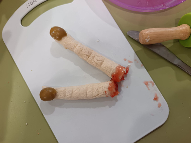 Comenzamos elaborando empanadillas de Nutella y de mermelada, dos recetas perfectas para descubrir diferentes sabores y trabajar la manipulación de masas. Después, nos adentramos en el mundo de Halloween con unos originales “Dedos de bruja”, una receta tan divertida como sorprendente.