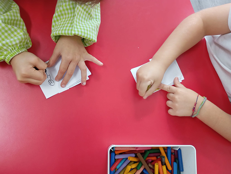 En cada sesión planteamos retos creativos y variados: manualidades con materiales reciclados como, por ejemplo, realizar pequeños talleres para crear pulseras, colorear con rotuladores con un toque de purpurina, así como realizar otras actividades como aviones de papel, comecocos, barcos de papel…
