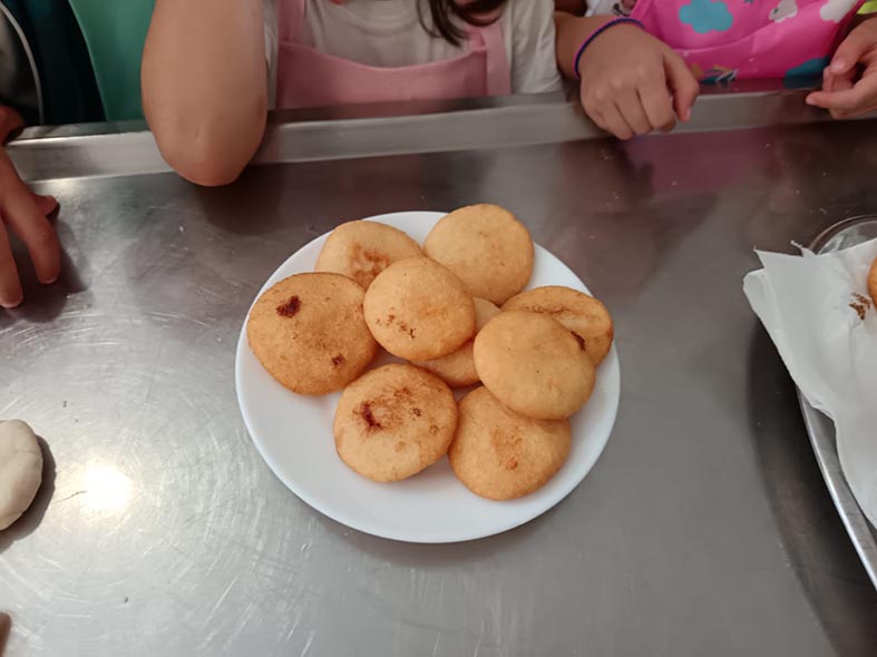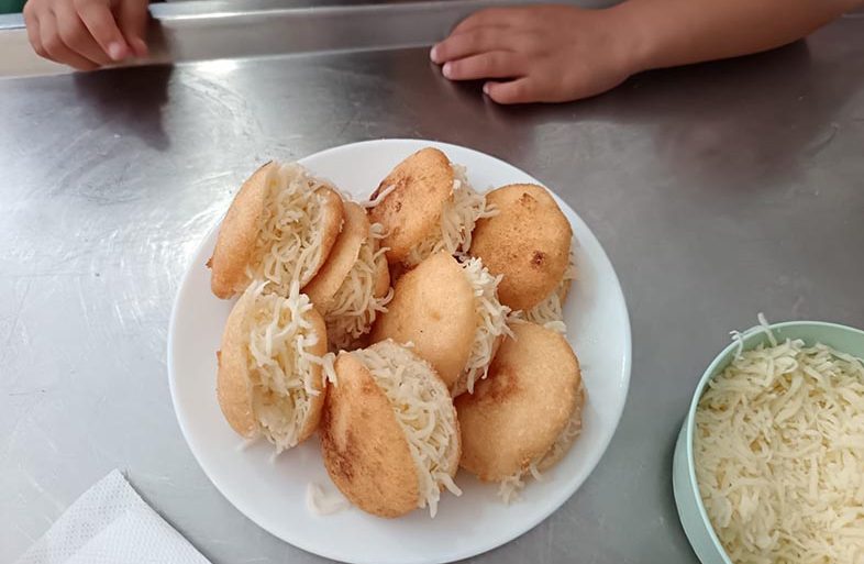 Arepas venezolanas, descubriendo la gastronomía de países latinoamericanos y practicando la mise en place, ordenando ingredientes.