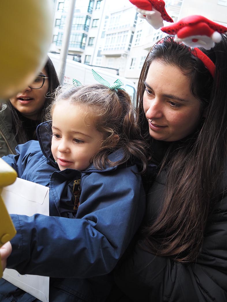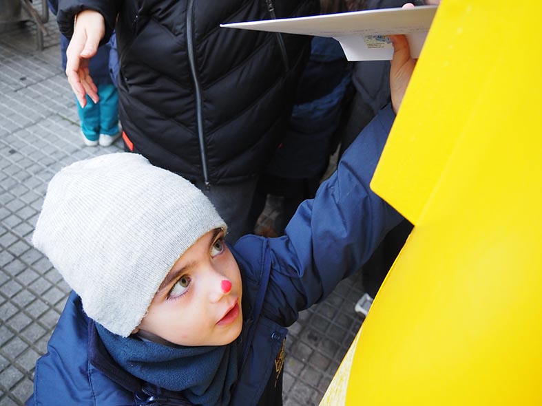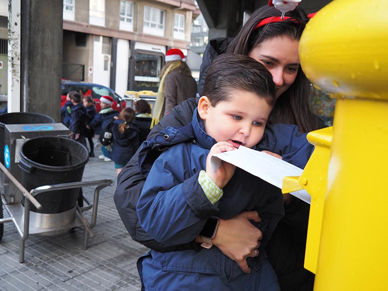 Durante los días previos, en el aula trabajamos el propósito y el recorrido de una carta. Les explicamos que, para que el cartero pueda hacer su trabajo, es imprescindible incluir una dirección postal y colocar un sello, elementos clave para que cualquier envío llegue correctamente a su destino. Con entusiasmo, los niños y niñas prepararon el contenido de sus cartas, mientras que nosotros, el equipo docente, les acompañamos en la colocación de los sellos y en la escritura de las direcciones.