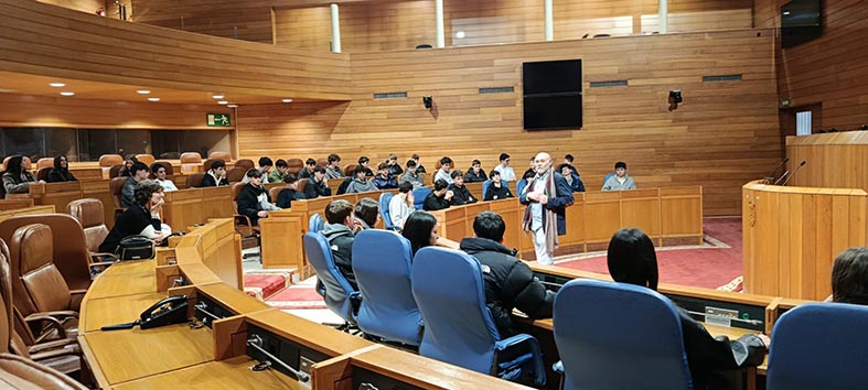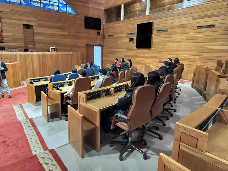 La última visita fue al Parlamento de Galicia, donde pudimos ver de cerca cómo funciona la política que solo vemos en telediarios. Fue mucho más divertido de lo que imaginábamos y nos permitió entender mejor cómo se toman las decisiones que nos afectan a todas las personas.