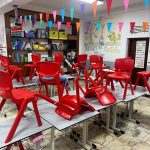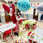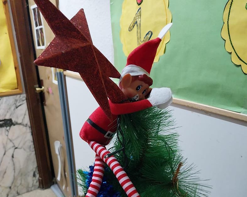 A lo largo de estos días nos encontramos con mesas del aula completamente del revés, como si alguien hubiera estado ensayando acrobacias nocturnas, fiestas improvisadas al caer la noche, mascotas secuestradas, elfos paseando en patines por los pasillos, e incluso invitaciones sorpresa para ir al cine…