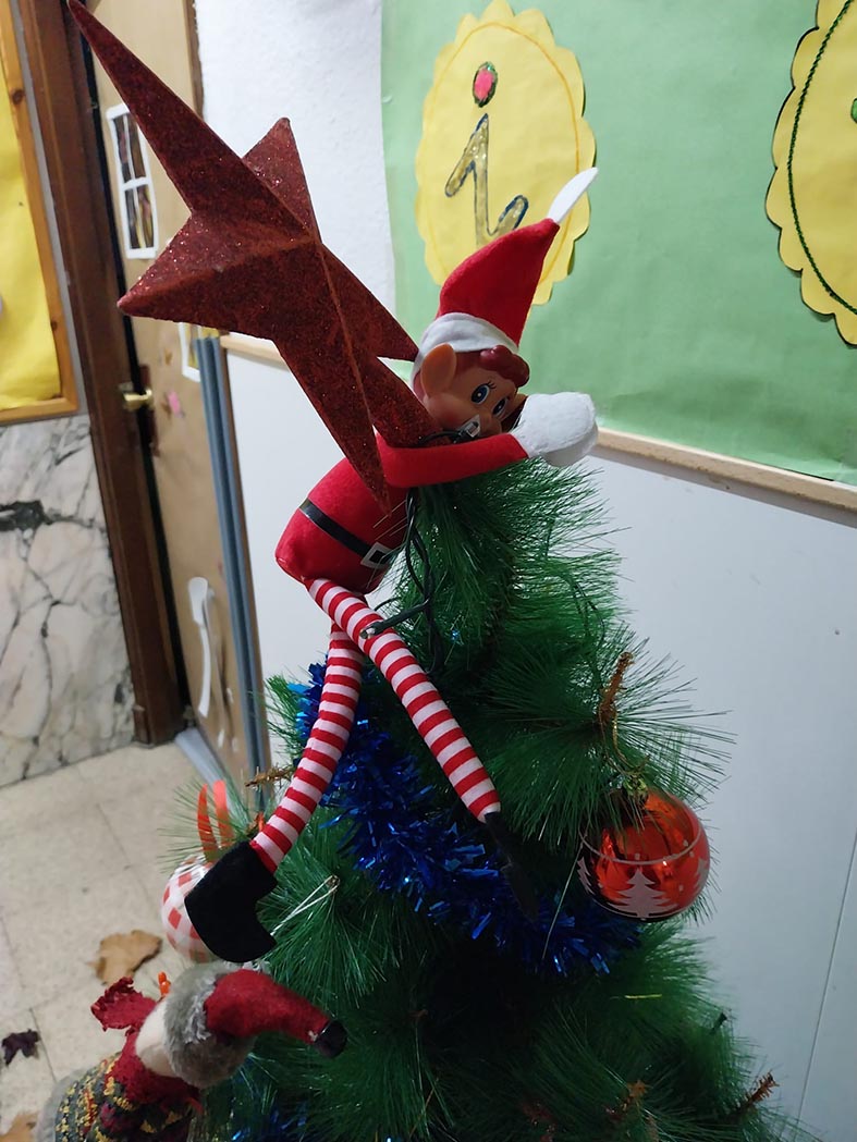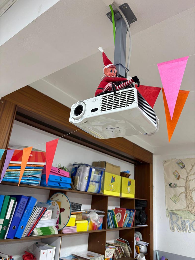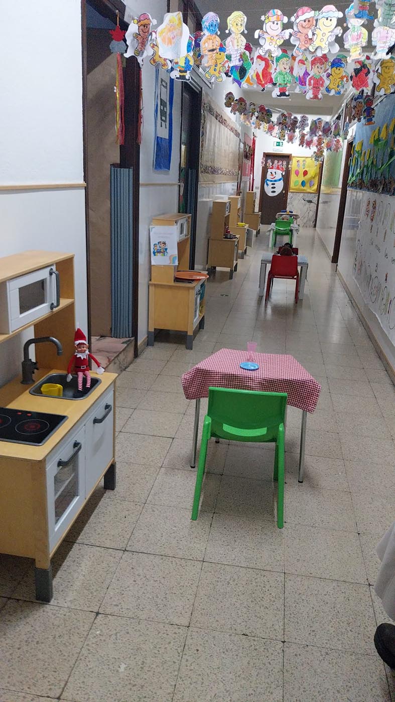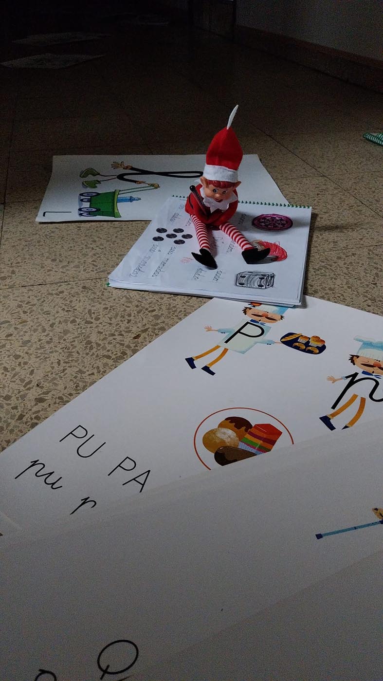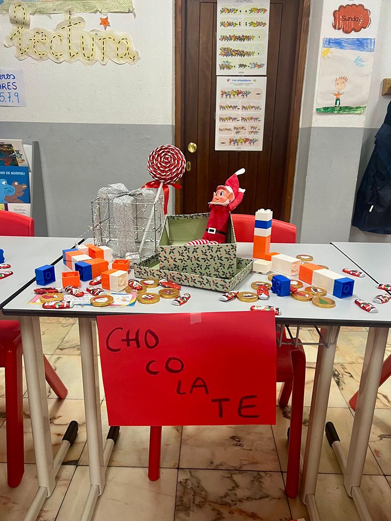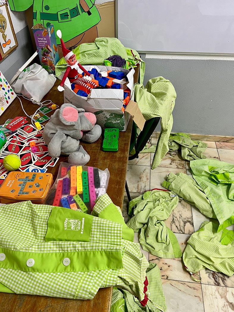 A lo largo de estos días nos encontramos con mesas del aula completamente del revés, como si alguien hubiera estado ensayando acrobacias nocturnas, fiestas improvisadas al caer la noche, mascotas secuestradas, elfos paseando en patines por los pasillos, e incluso invitaciones sorpresa para ir al cine…