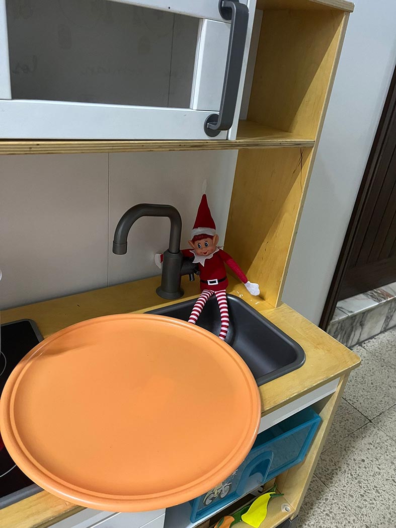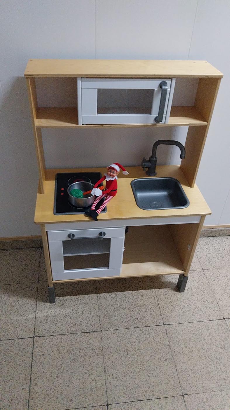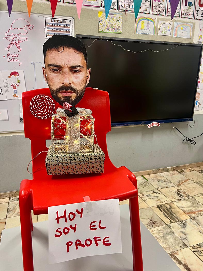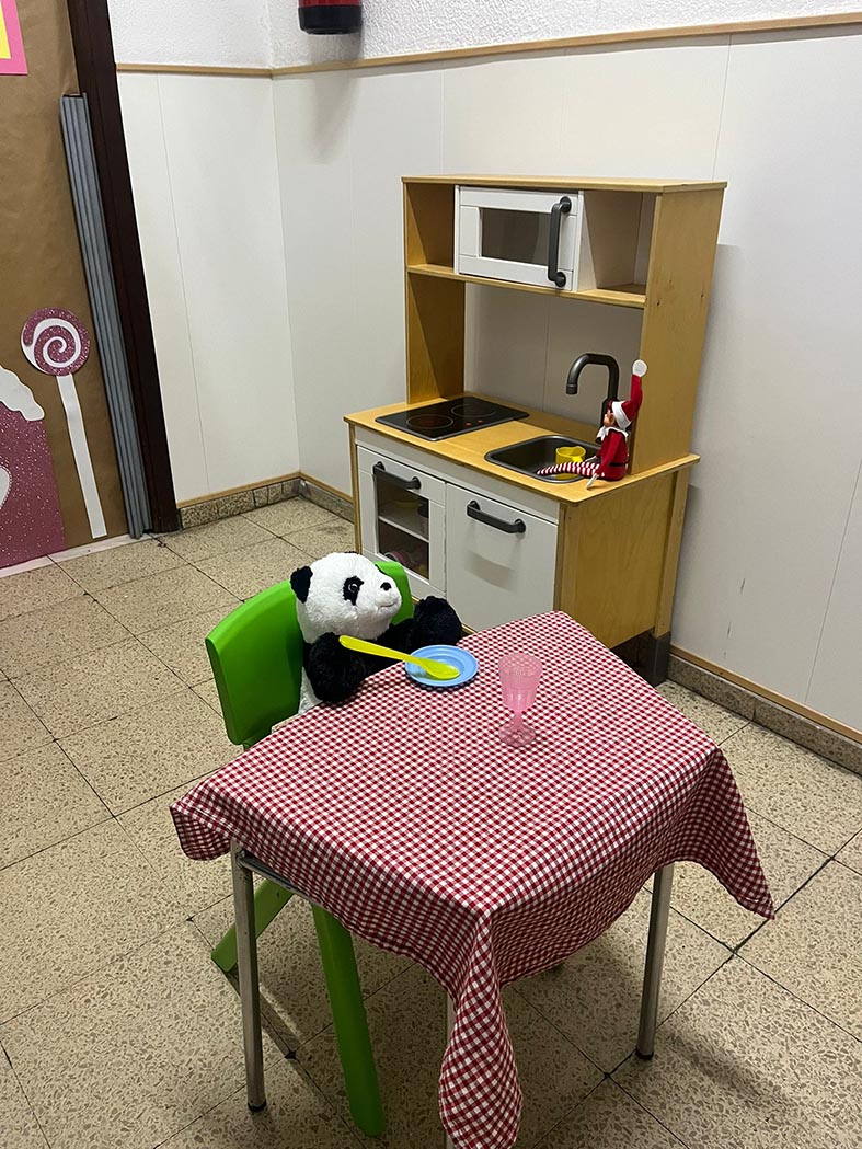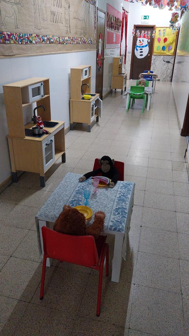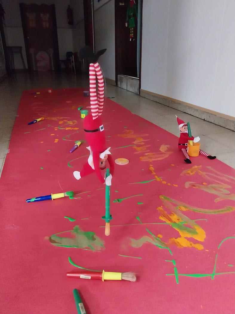 A lo largo de estos días nos encontramos con mesas del aula completamente del revés, como si alguien hubiera estado ensayando acrobacias nocturnas, fiestas improvisadas al caer la noche, mascotas secuestradas, elfos paseando en patines por los pasillos, e incluso invitaciones sorpresa para ir al cine…