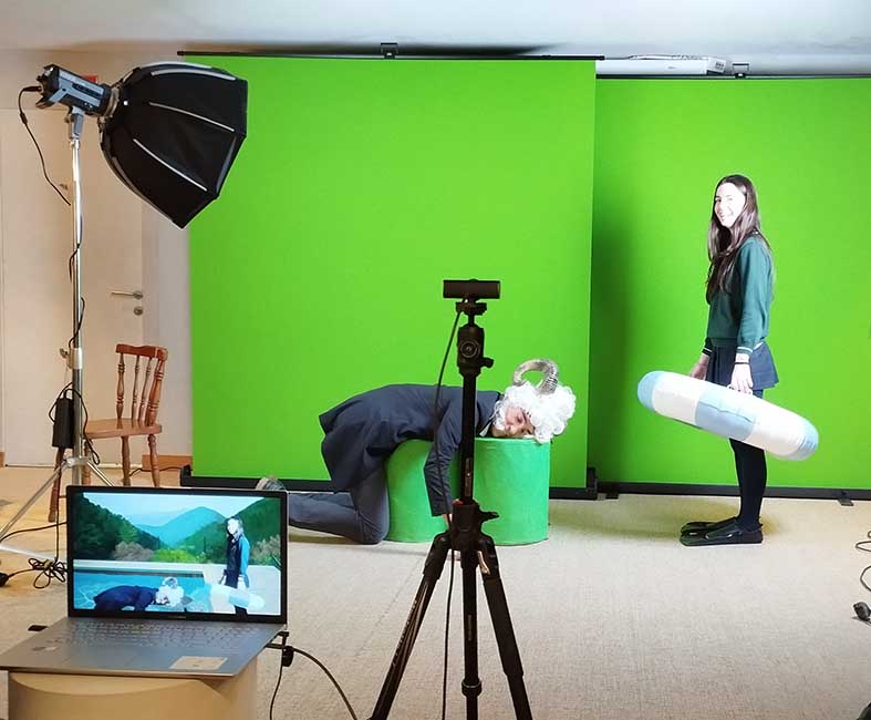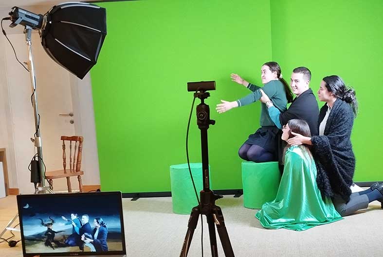 Además, la actividad se completó con un taller didáctico de fotografía en el que el alumnado, sirviéndose de un croma, reinterpretó obras de arte tal y como hace la propia artista, experimentando así con la puesta en escena, la iluminación y la construcción de la imagen.
