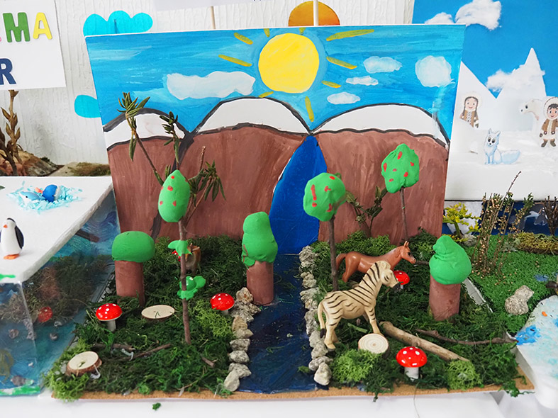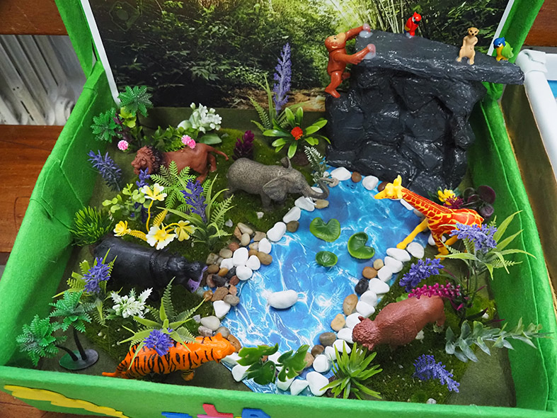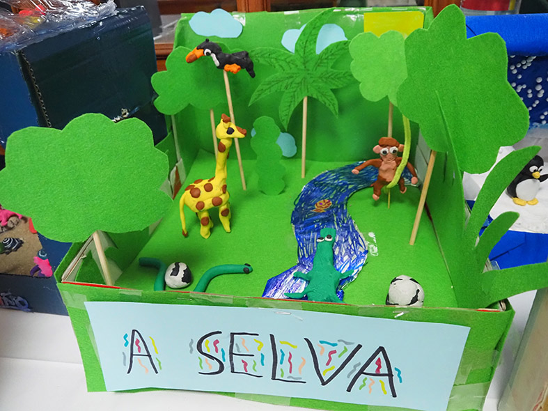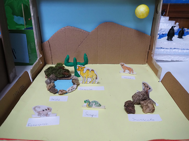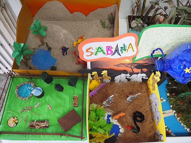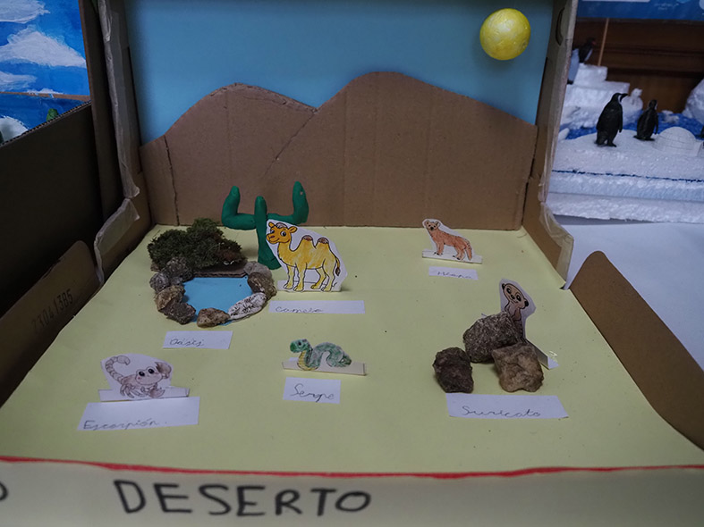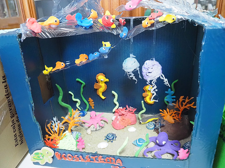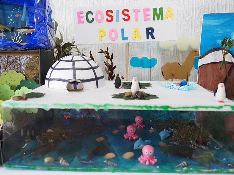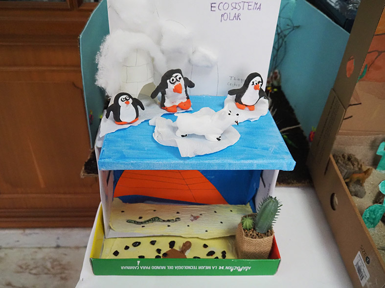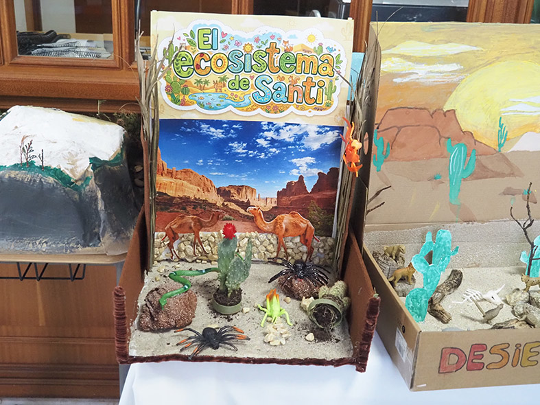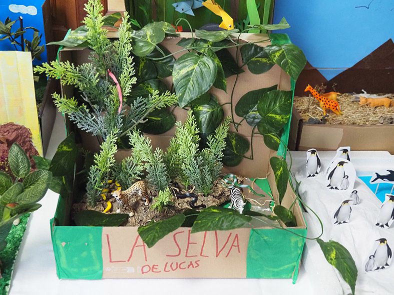 De este modo, surgieron pequeñas representaciones de la sabana, el océano, los bosques, los ríos, la selva… en las que cada alumno tuvo que pensar qué animales y plantas viven en cada entorno y cómo se relacionan entre sí. Además de desarrollar su creatividad, el proyecto les permitió comprender mejor cómo funcionan los ecosistemas y la importancia del equilibrio entre los seres vivos y su entorno.