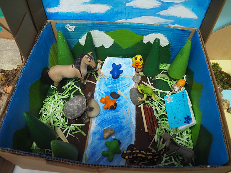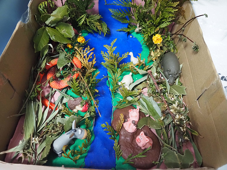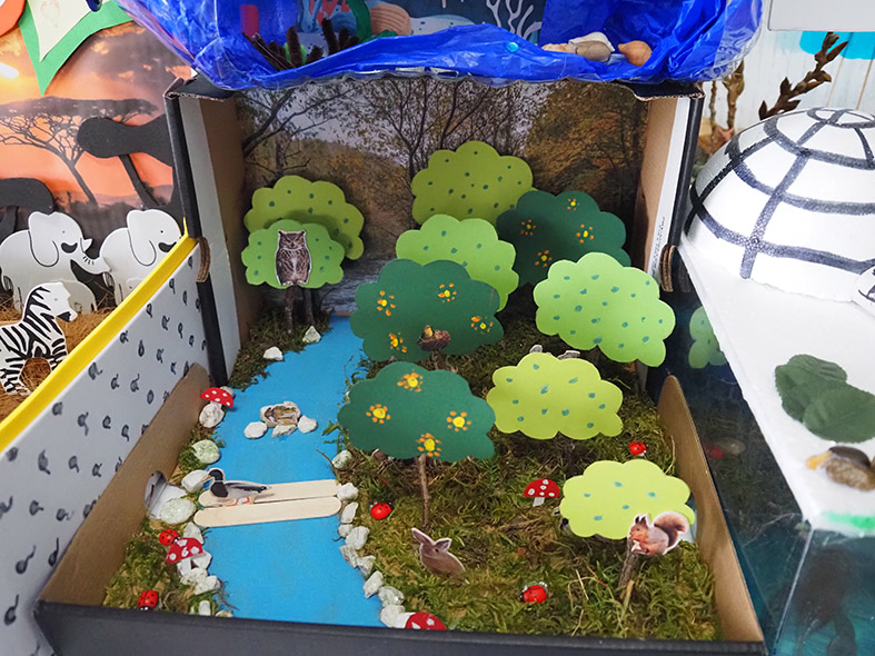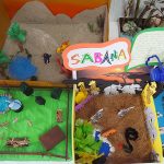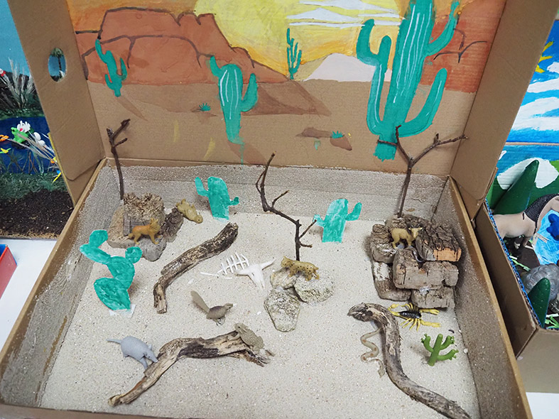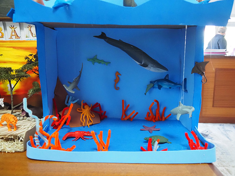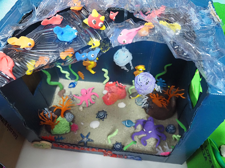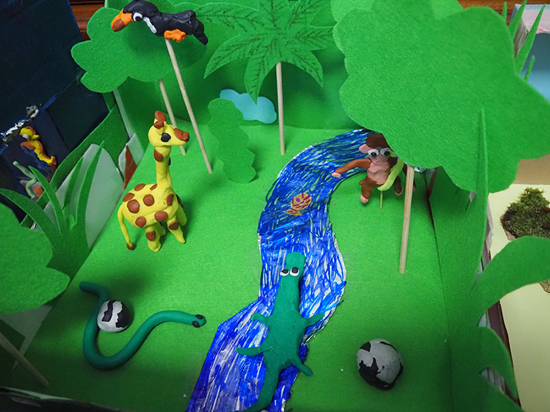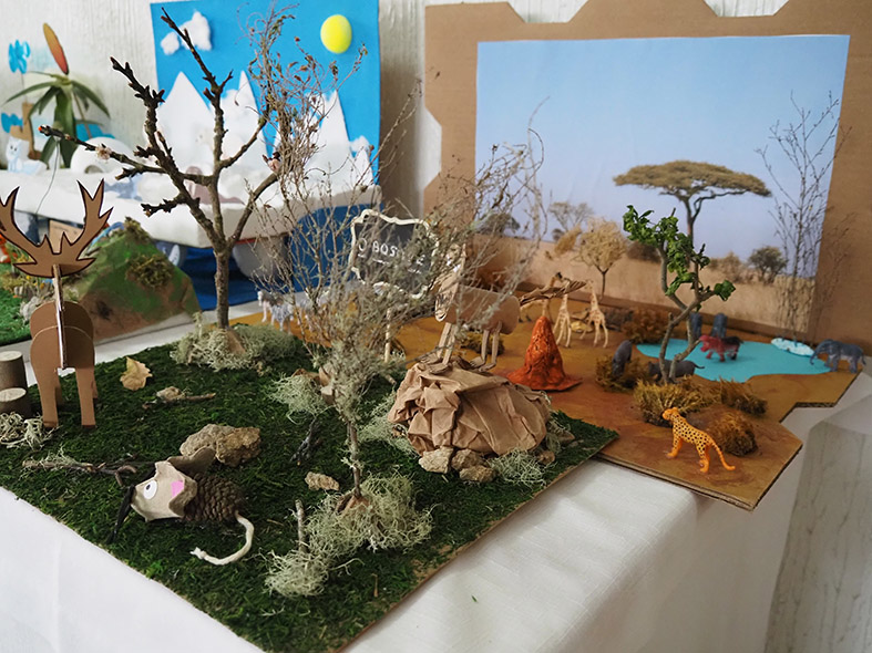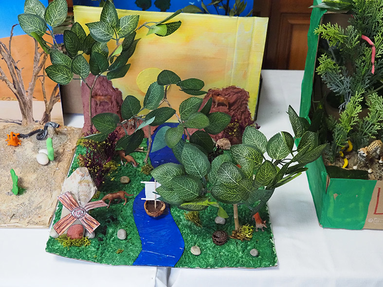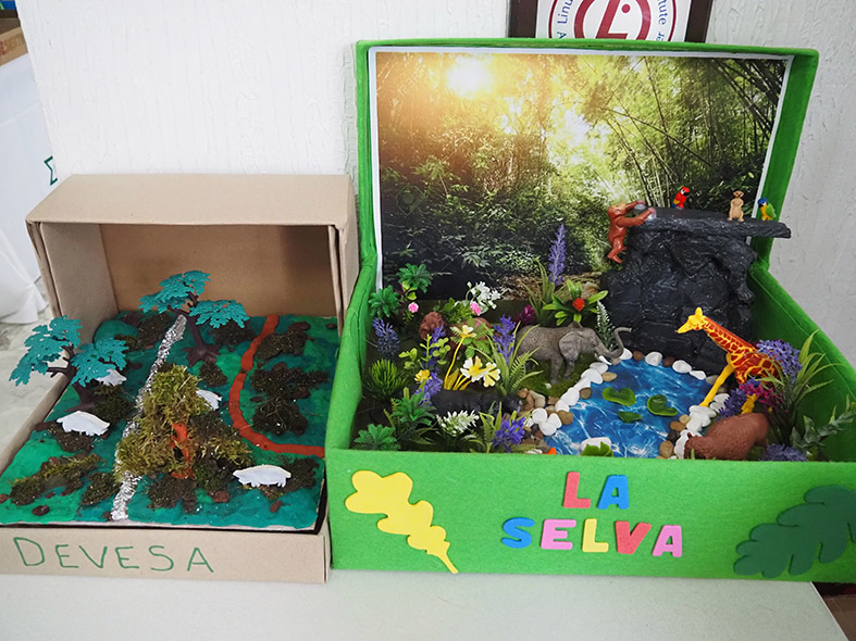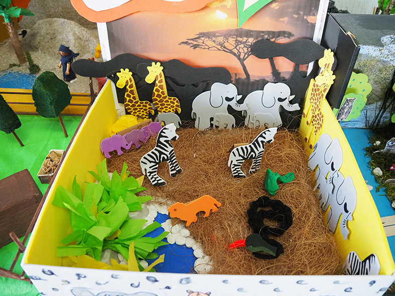 De este modo, surgieron pequeñas representaciones de la sabana, el océano, los bosques, los ríos, la selva… en las que cada alumno tuvo que pensar qué animales y plantas viven en cada entorno y cómo se relacionan entre sí. Además de desarrollar su creatividad, el proyecto les permitió comprender mejor cómo funcionan los ecosistemas y la importancia del equilibrio entre los seres vivos y su entorno.