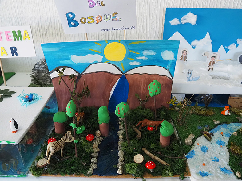 El alumnado de 3º de Primaria trabajó los ecosistemas a través de un proyecto creativo y muy visual en el aula. Como parte de la actividad, los estudiantes construyeron maquetas de ecosistemas, recreando diferentes hábitats naturales con todo tipo de materiales: plastilina, figuras, muñecos, y elementos decorativos.