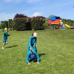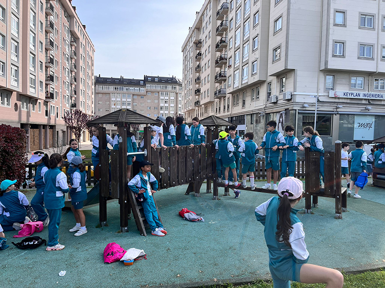 En esta última jornada la gran novedad fue la salida de 2º de Primaria al parque de Xuxán. Zona muy cercana y divertida para nuestro alumnado más pequeño en el día de hoy. Su comportamiento en el desplazamiento ha sido impecable y el gran parque infantil ha sido el ganador de las cinco estaciones. Brilé, paracaídas, sacos, carreras… sí, pero el parque, ¡es el parque!